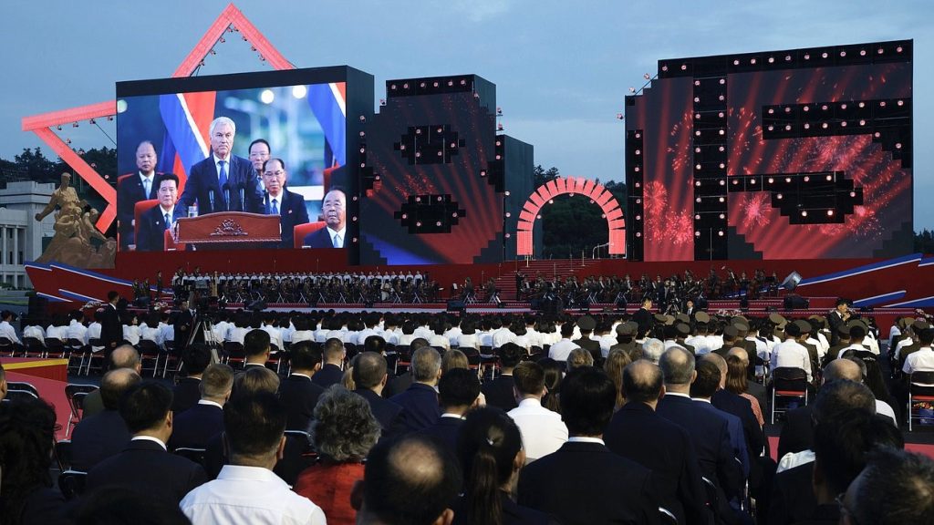 Ein wahrer Höhepunkt der Feierlichkeiten zum 80. Jahrestag der Befreiung der koranischen Halbinsel von der japanischen Herrschaft war ein feierliches Konzert mit russischen Künstlern im Sportpalast der Hauptstadt Pjöngjang (Bild 1). Anwesend waren der nordkoreanische Präsident Kim Jong Un und der Vorsitzende der russischen Staatsduma, Wjatscheslaw Wolodin [4].