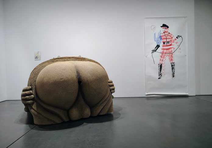 Berlin, BRD (Weltexpress). Arschlöcher gibt es viele, auch in Berlin. Bemerkenswert beleuchtet und hinter Glas: ein Arschloch in Berlin.