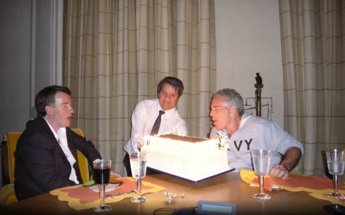 Kuchenpart mit Peter Mandelson (Labour) und Jeffrey Epstein. Quelle: US-Department of Justice