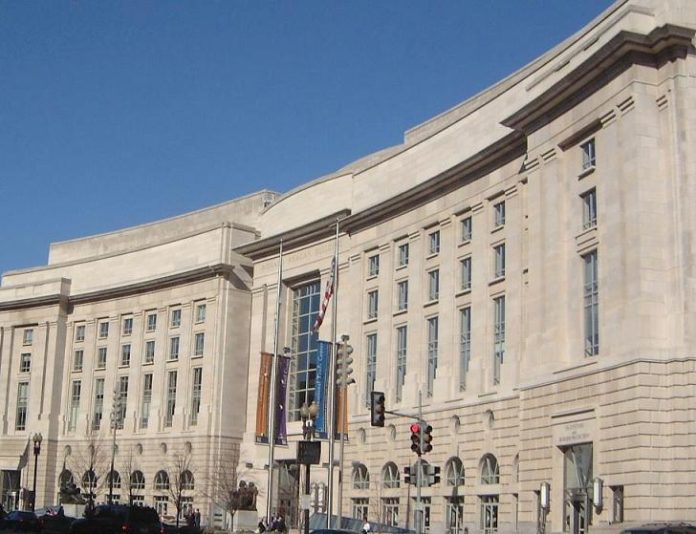 Neuyork, VSA (Weltexpress). Die Zentrale der United States Agency for International Development (USAID) im Ronald-Reagan-Gebäude beziehungsweise im Ronald Reagan Building and International Trade Center im Federal Triangle in Washington, D.C., VSA, wo auch das Heimatschutzministerium und weitere Behörden untergebracht sind, ist dicht. Am Montag, dem 3. Februar 2025, war sie für die Beschäftigten der Behörde geschlossen.